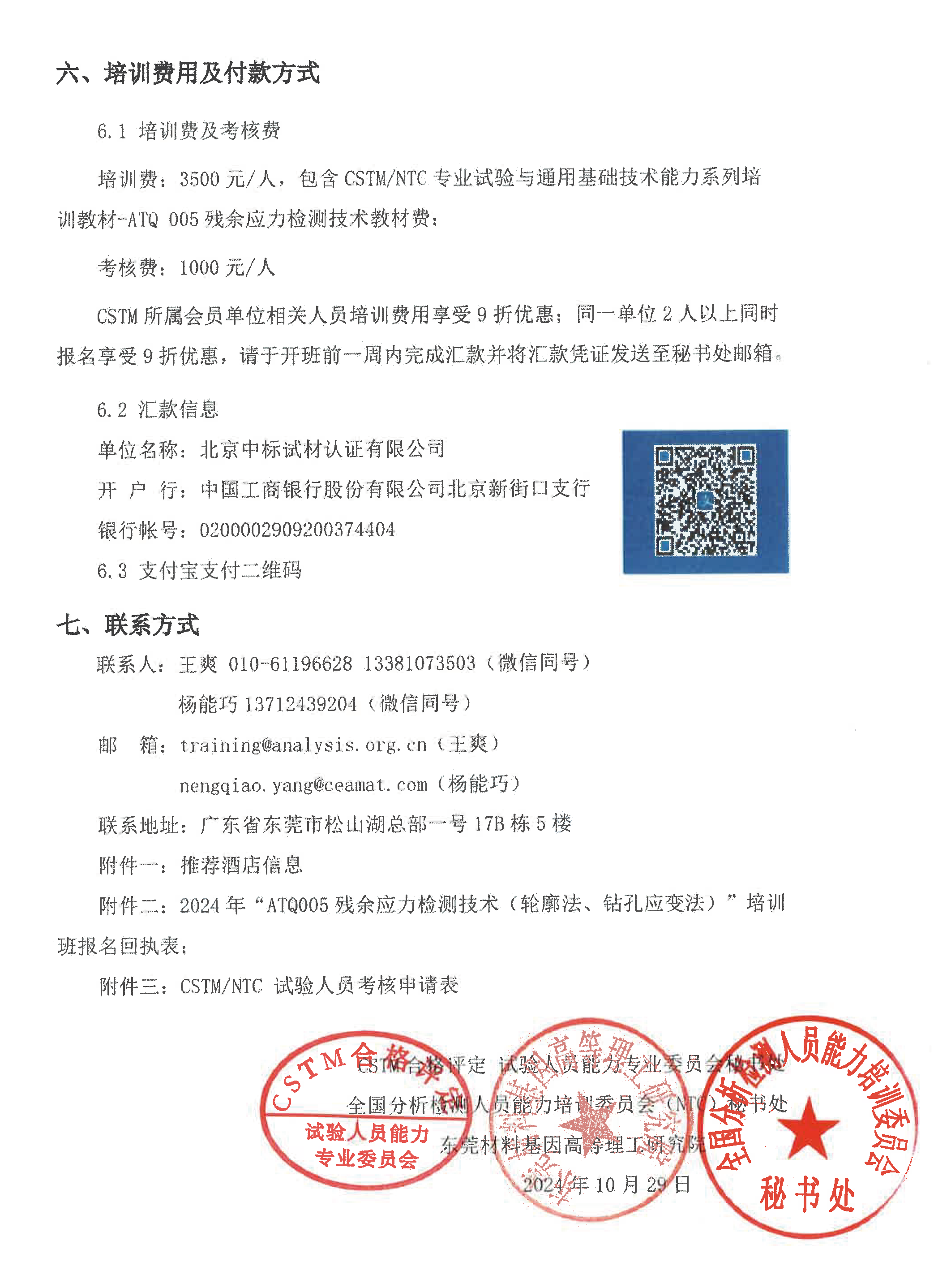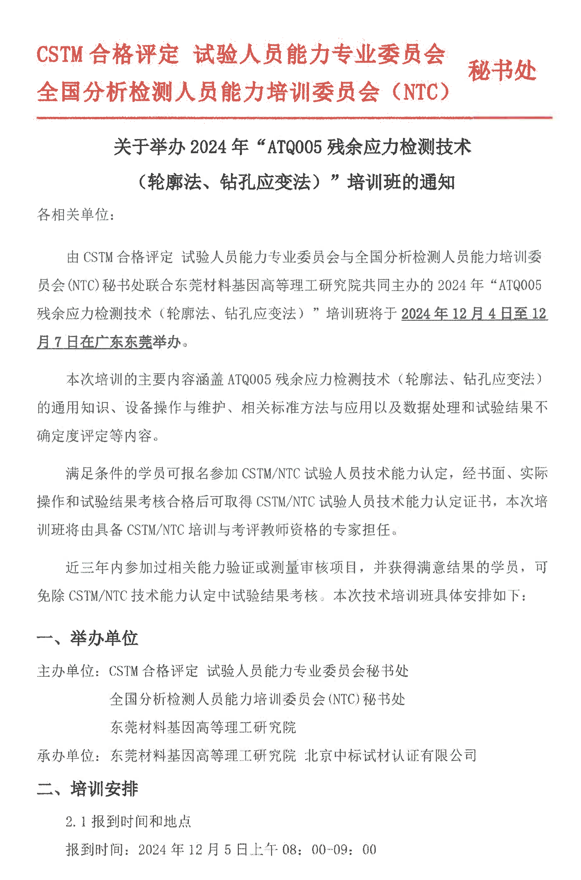 关于举办2024年“ATQ005残余应力检测技术 (轮廓法、钻孔应变法)”培训班的通知