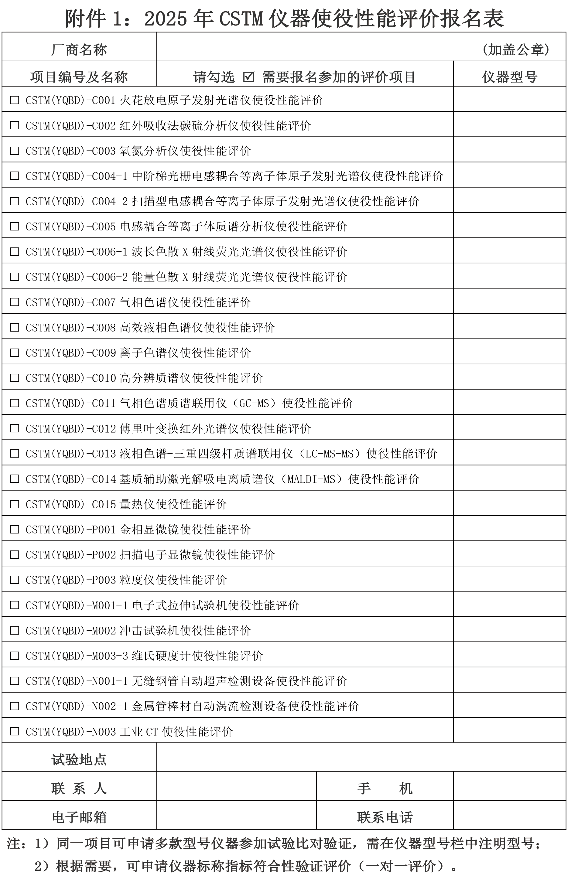 附件1:2025年CSTM仪器使役性能评价报名表-20241031-最终版.docx
