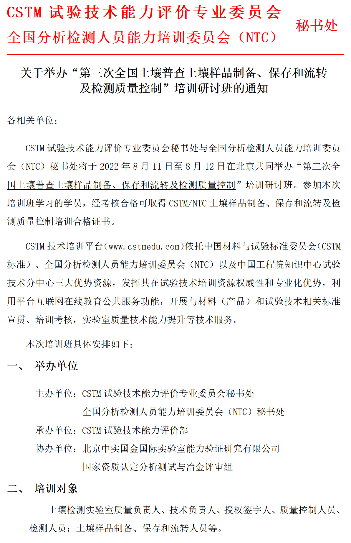 关于举办“第三次全国土壤普查土壤样品制备、保存和流转 及检测质量控制”培训研讨班的通知