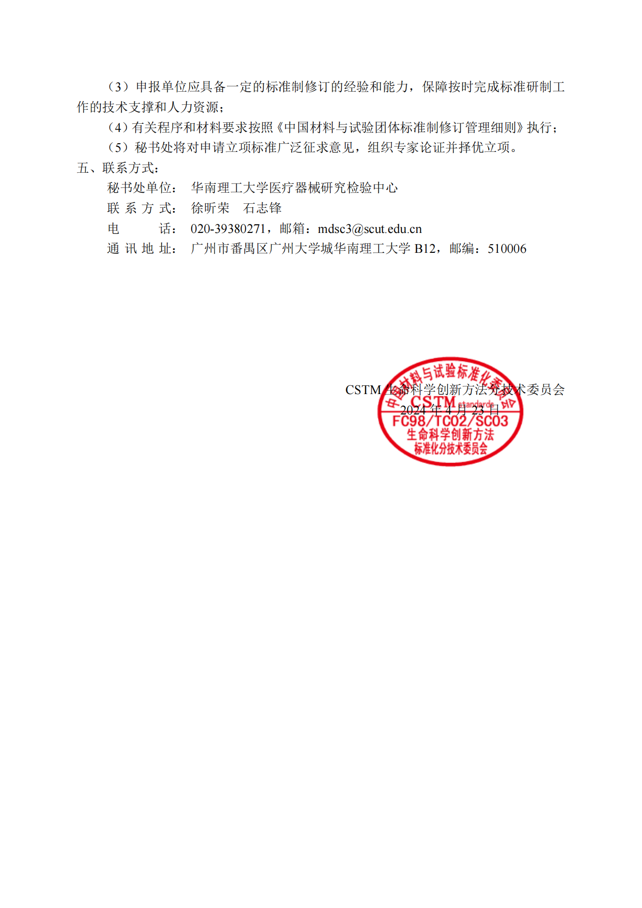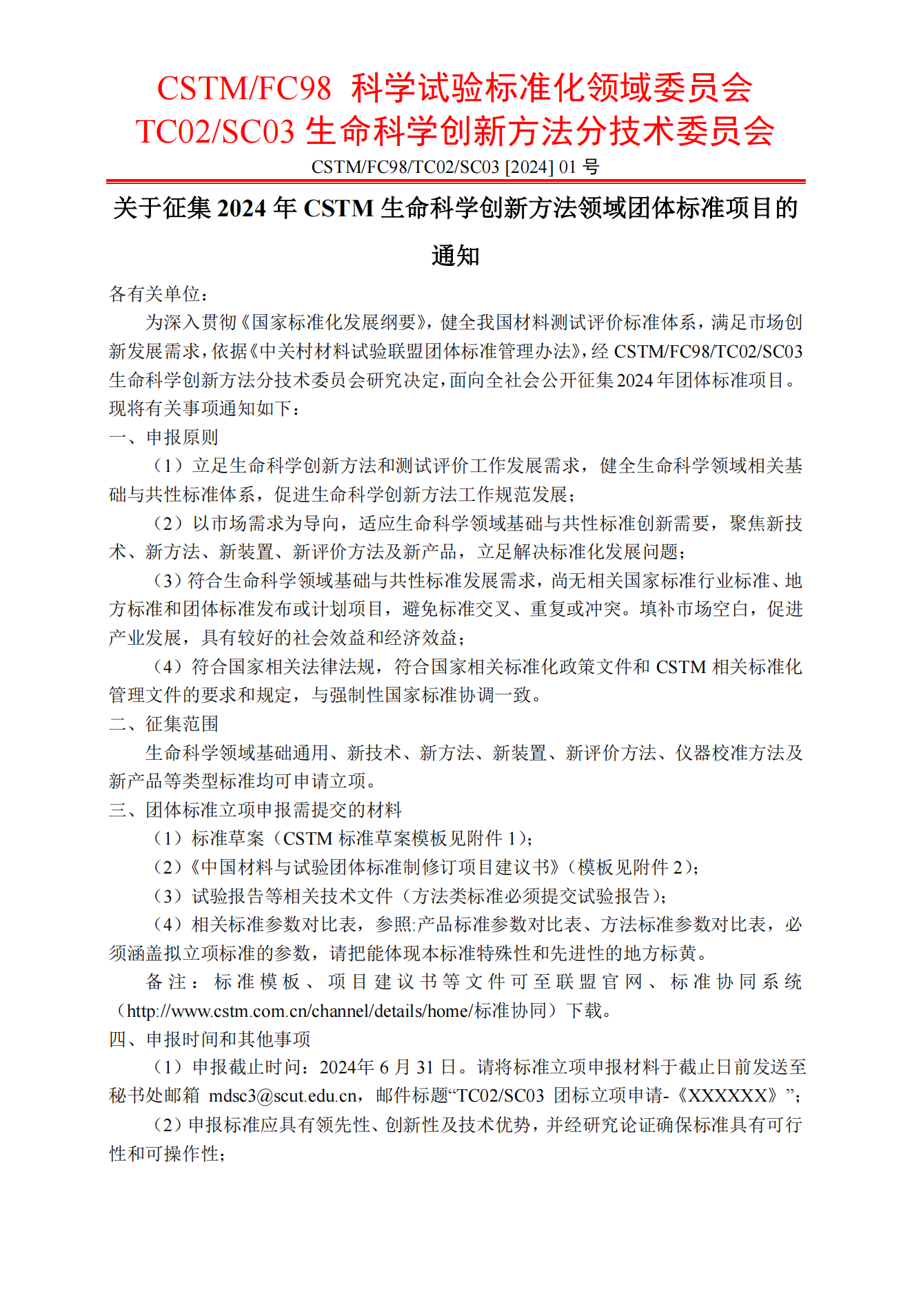 关于征集2024年CSTM生命科学创新方法领域团体标准项目的通知