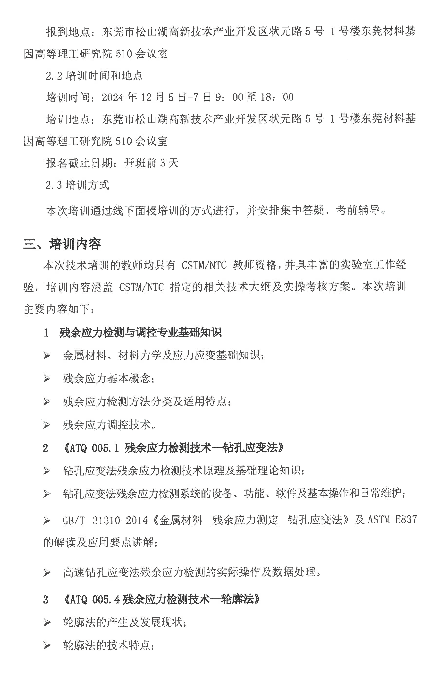关于举办2024年“ATQ005残余应力检测技术 (轮廓法、钻孔应变法)”培训班的通知