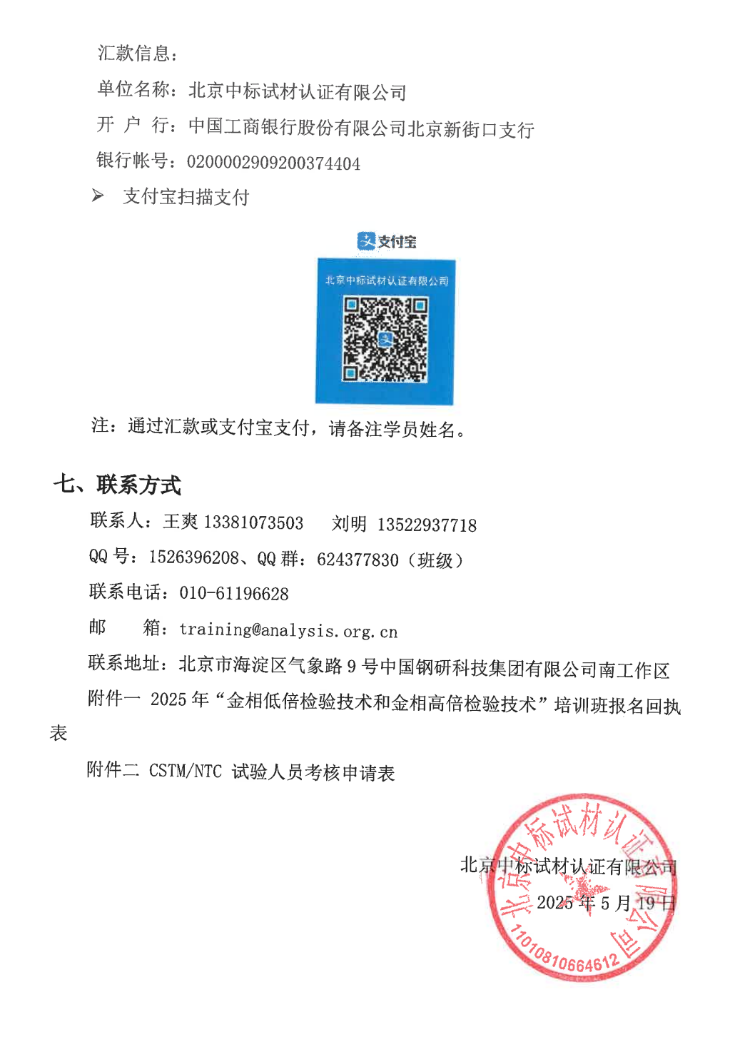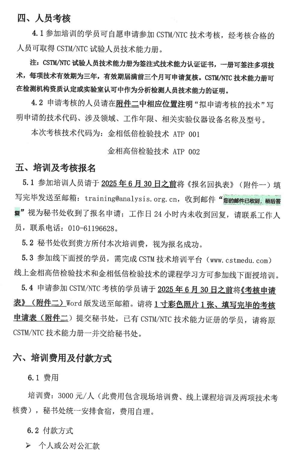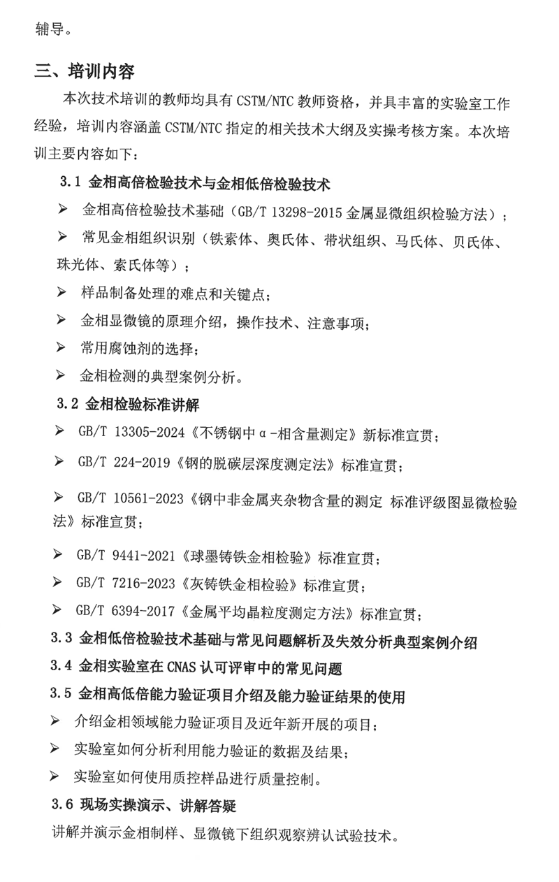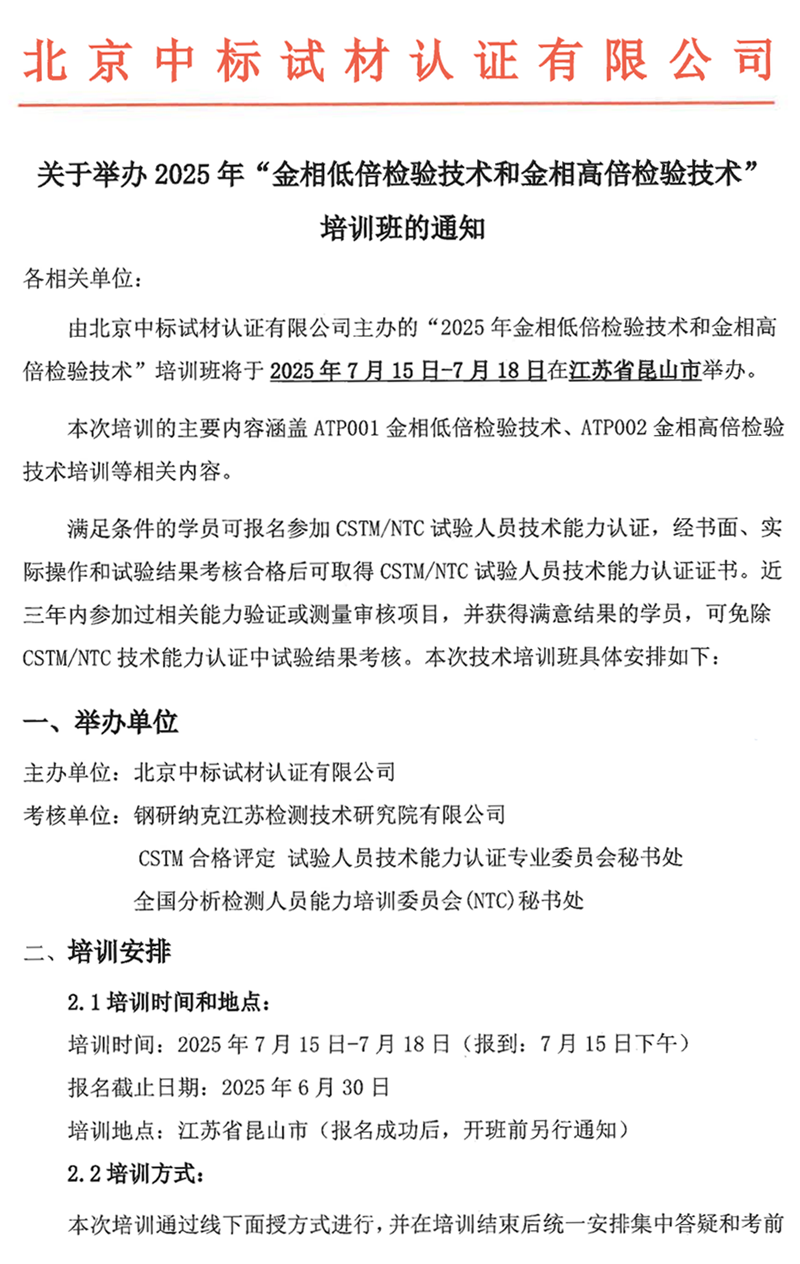 关于举办2025年“金相低倍检验技术和金相高倍检验技术” 培训班的通知