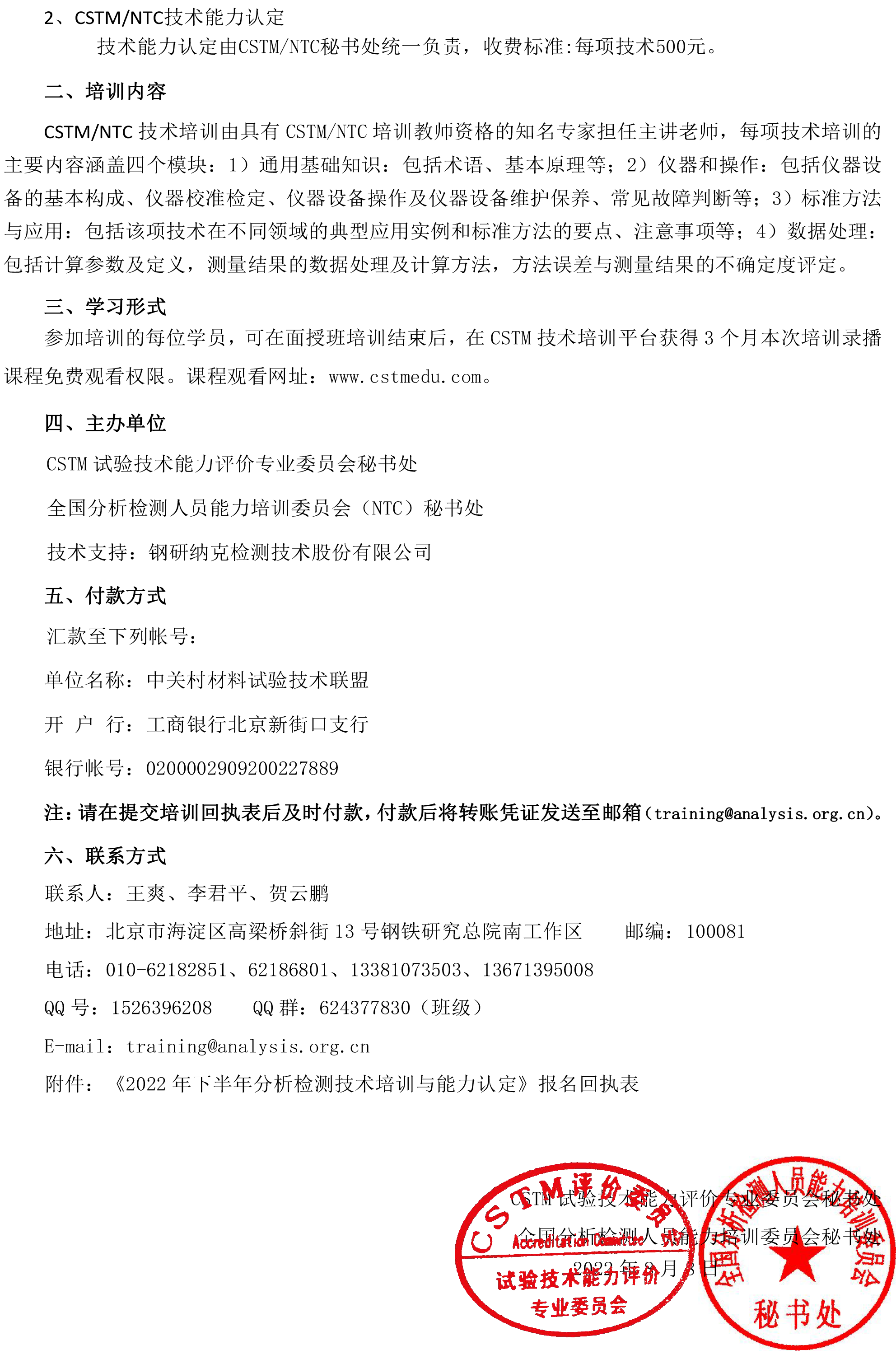 附件:《2022年下半年分析检测技术培训与能力认定》报名回执表.docx