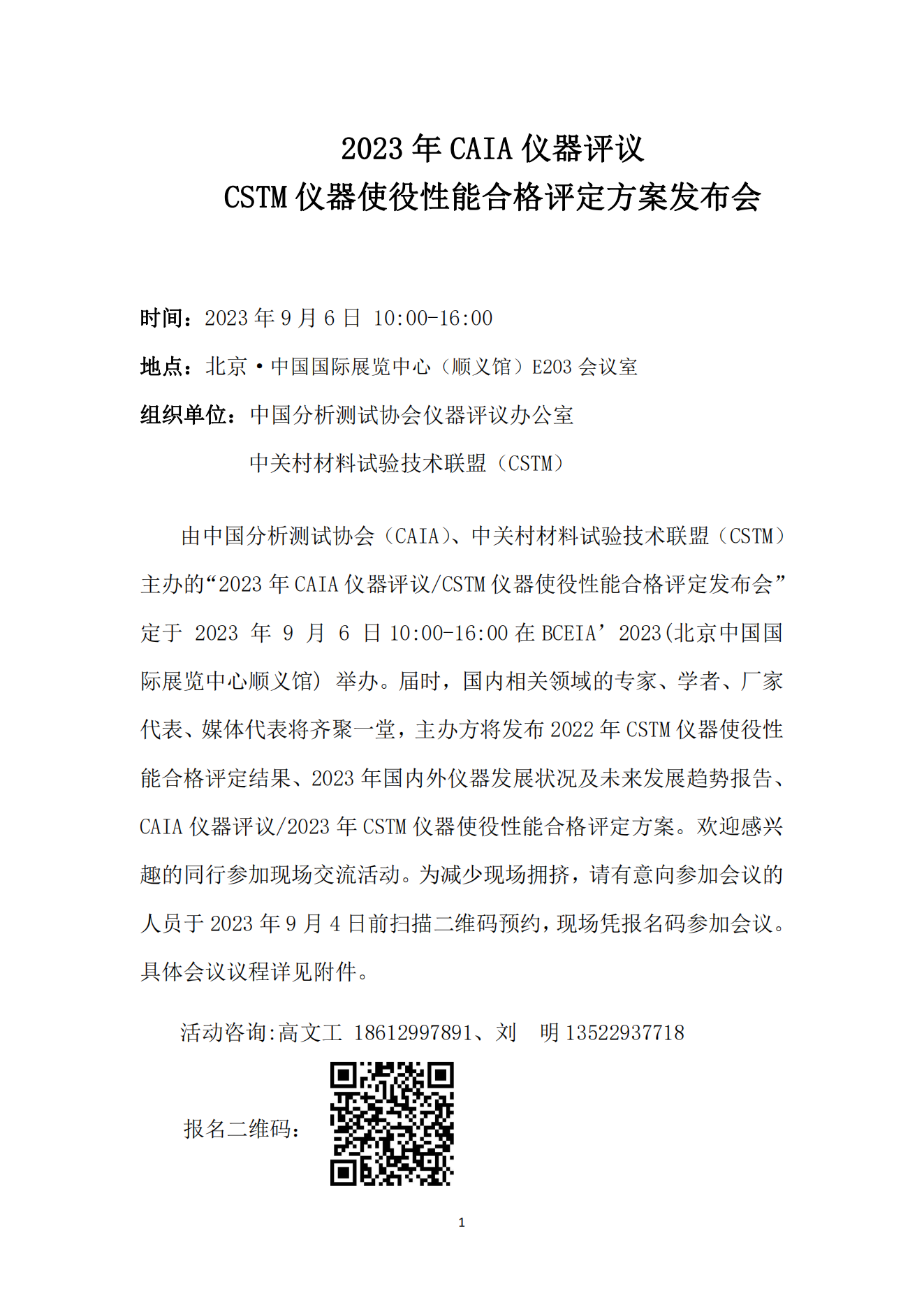 2023年CAIA仪器评议 CSTM仪器使役性能合格评定方案发布会邀请函