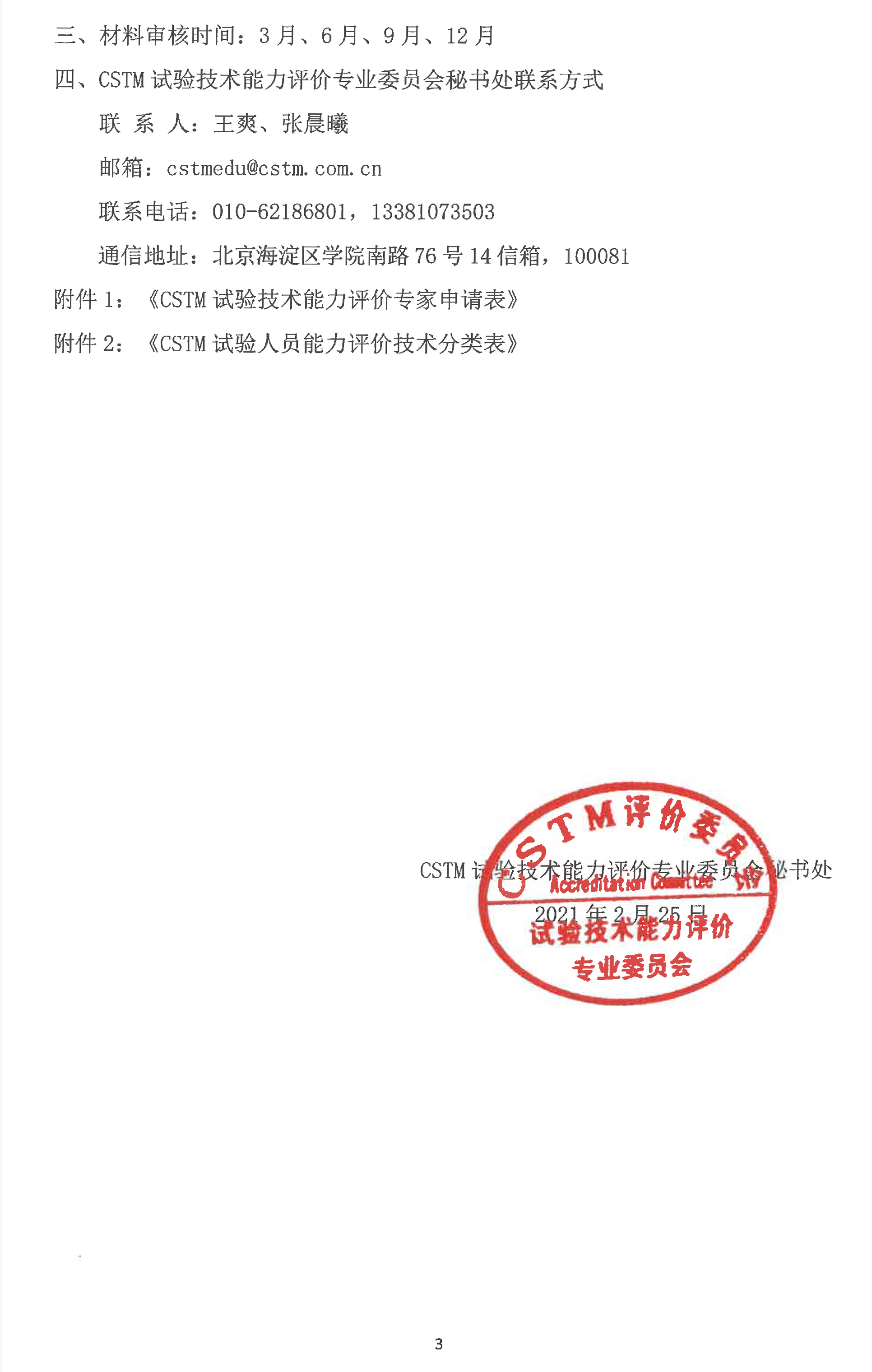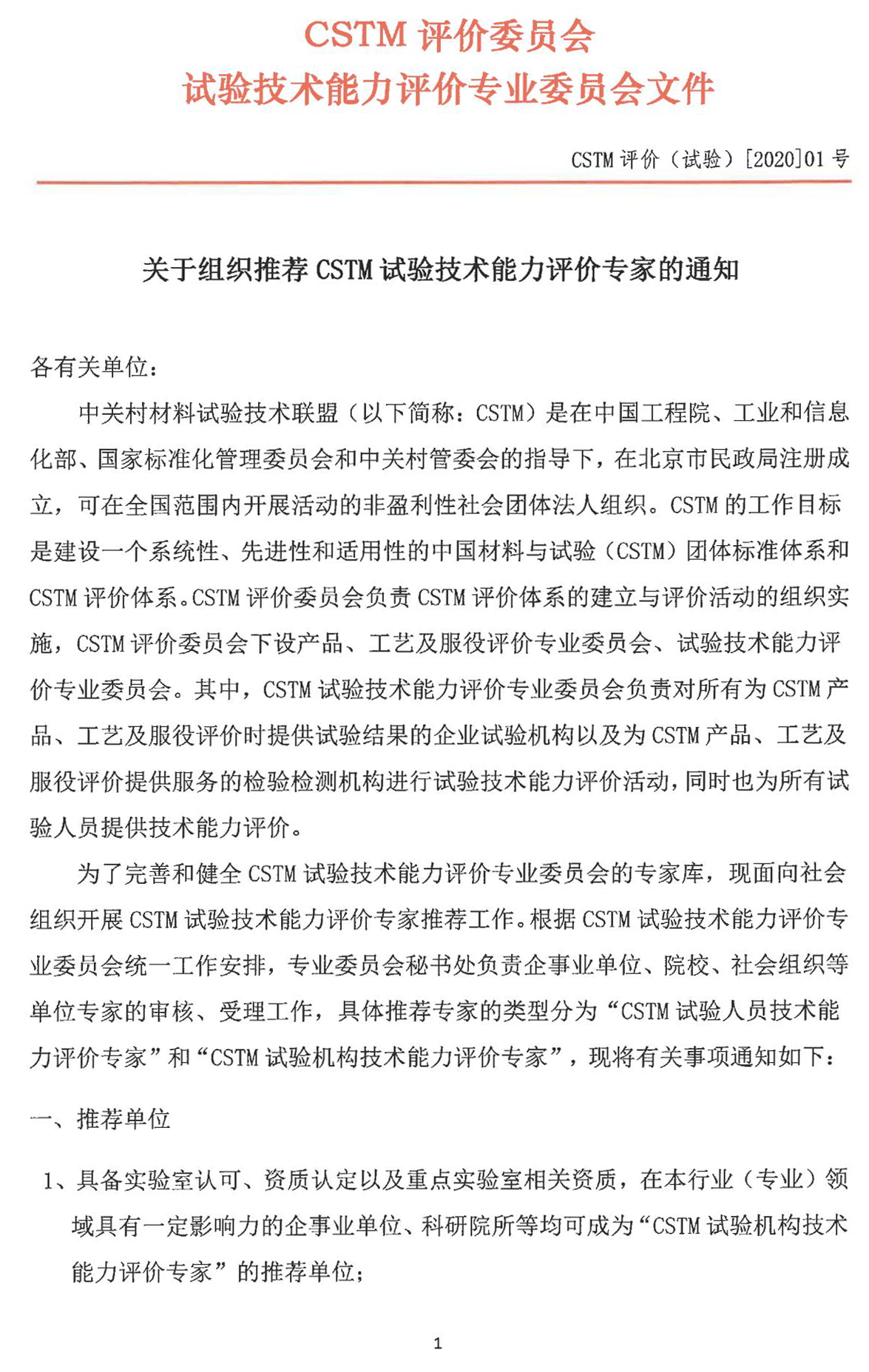 关于组织推荐CSTM试验技术能力评价专家的通知